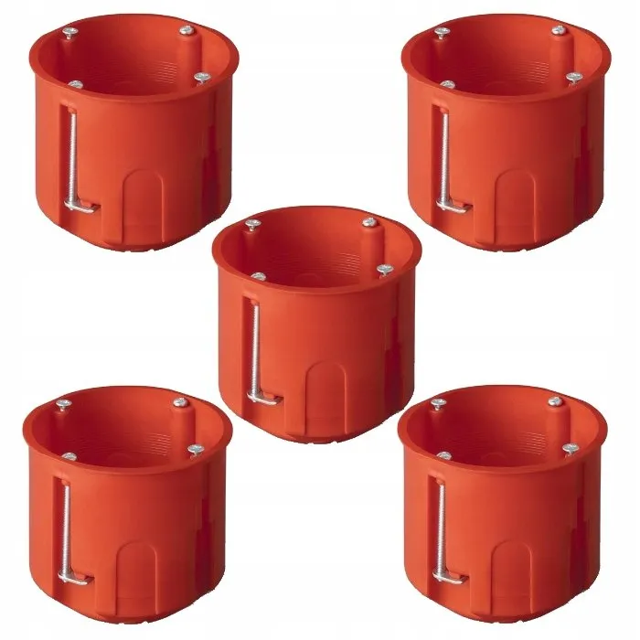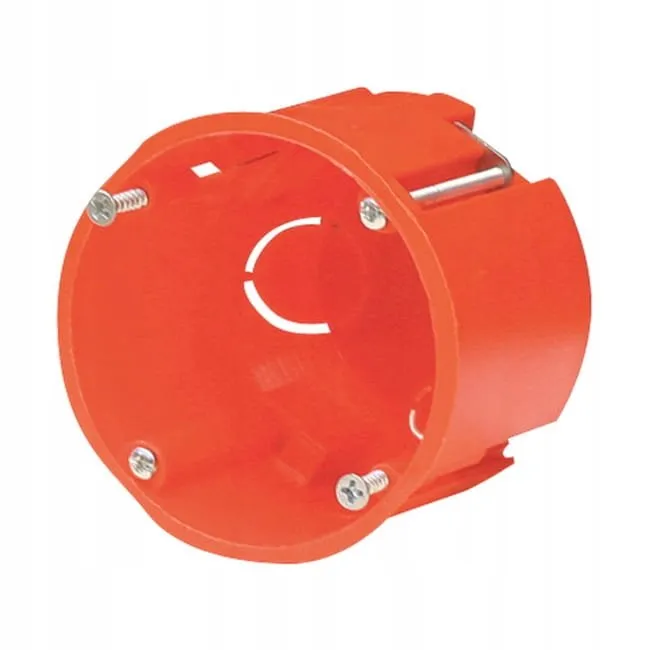 Puszka podtynkowa o wymiarach 60x60x60 mm, przeznaczona do montażu w ścianach z betonu, cegły lub pustaków. Zapewnia bezpieczne i estetyczne osadzenie mechanizmów łączących lub gniazd elektrycznych.